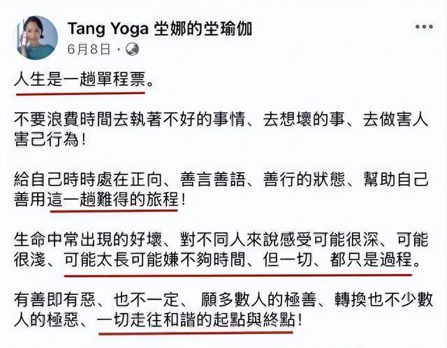 还出了书,经常在线下线上,传播她“身心平衡”的理念。 一切都朝着好的方向发展的时候,坣娜迎来了她的第三个灾难。 2022年,命运的阴霾再度笼罩她。一张诊断书,无情宣告她患上胰腺癌,病痛又一次缠上了她。 她社交账号的最后一条动态,第一句话就是:“人生就是一张单程车票。开头的短短几字就引人深思。 而她人生的这趟列车也快到了终点,最终在2025年10月她因红斑狼疮复发去世。